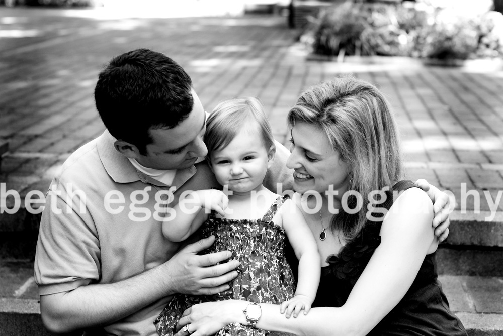 Meet the Liss Family! Oh my, what a session. Little Miss L couldn’t quite decide if she wanted to have her photograph taken while I was there last weekend! Almost two year olds are funny – and they definately have a mind of their own. I just love her expression in this first image – it made me laugh out loud when I first saw it. Something about the way she is looking at me, maybe like I’m a few cards short a full deck! Once little miss L settled in, we were able to get some really darling shots. She is such a cutie and I loved her little Matilda Jane outfit! Thanks Ilana and Zach for choosing Beth Eggert Photography to capture your beautiful family!