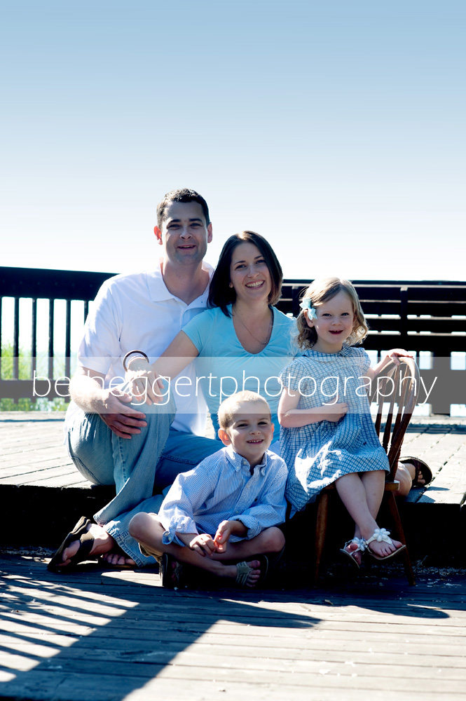 Meet the B family! It was such a pleasure to work with Anna and Howard and their two beautiful children. We were lucky that the rains stopped in time for the ground to dry out a bit. It was still just a touch soggy in some parts of lovely Patterson Park but overall, definately do-able. The morning of our session the sun was shining, the lake was glistening and the fish flies were a-flying… yep, good thing the kids think the fish flies are fun…me, I’m okay with the little bugs…especially when they help make my job easier. What little boy can resist bugs stuck to a camera lens, or to mom’s knee or on dad’s head? And little B was a great sport too. She was happily kicking up swarms of the little sticky bugs while we made our way to the boardwalk and gazebo. I know my own daughters, who are much much older, would’ve been totally freaked out by the fish flies!
