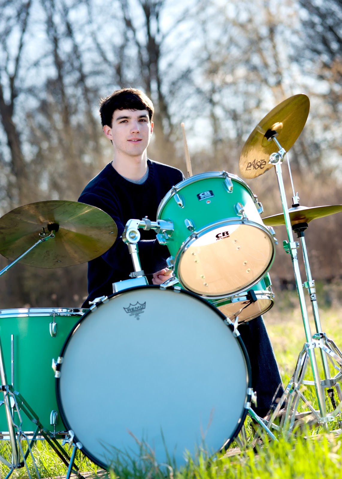 Love the drums outside- what a great idea! Looks like he warmed up to the idea of the session, because he looks very comfortable in front of your camera!