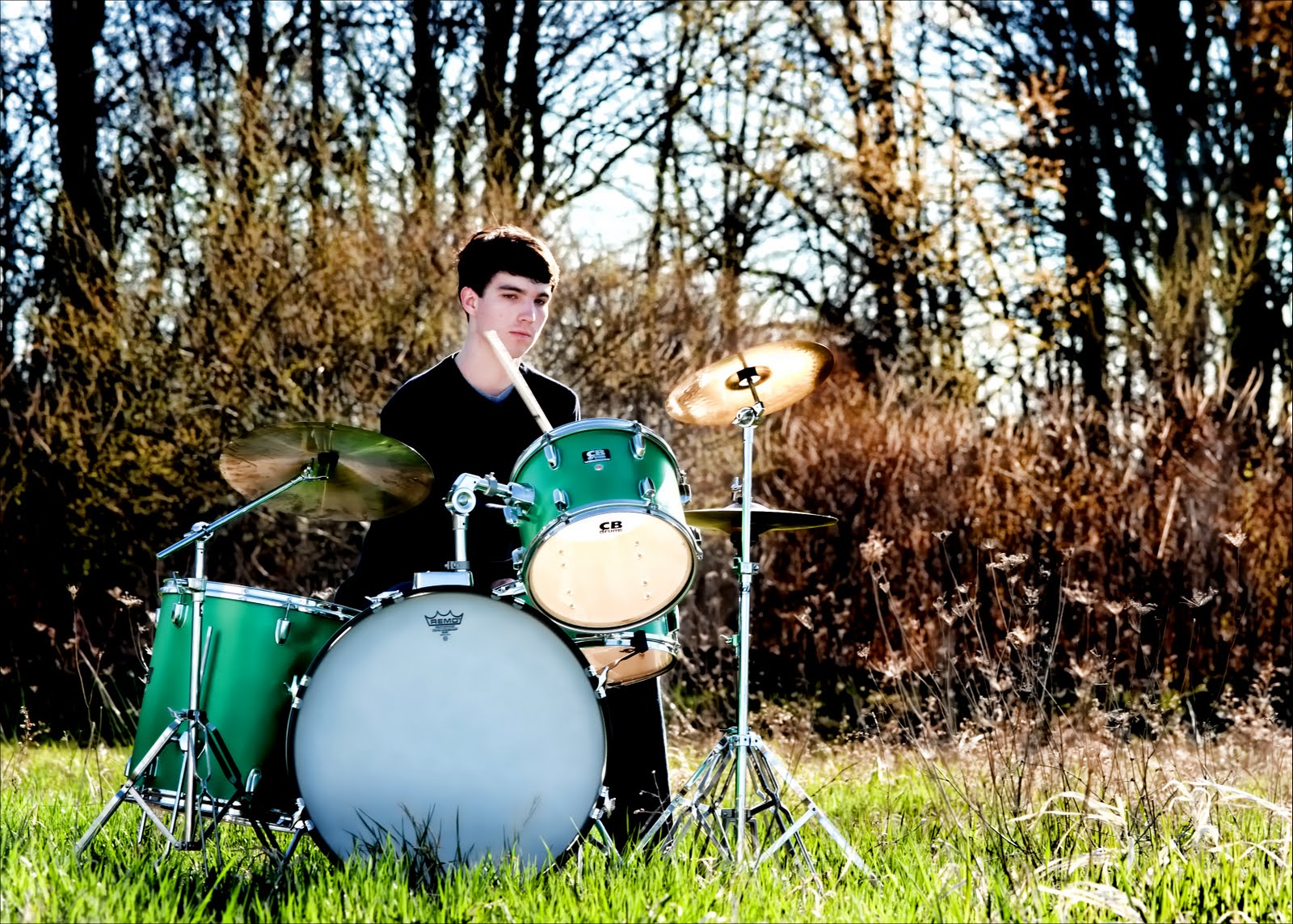 You know how you get an idea in your head and you can just see the end product in your minds eye – even if it isn’t a photograph? Well that’s what happened with me during this mini session with Dan. To say Dan was a bit reluctant to have senior pictures taken would be an understatment of huge proporations but since I’m his aunt and his mom put a bug in my ear AND since I just found out he has a band and plays killer drums, the poor boy didn’t stand a chance. Yes, I made him pack up the whole set, drive it 35 miles to my favorite field, unload, set up and then play for me while I photographed him! I love this series of images of him. And you know what, I think he kind was diggin it too. Since he was here all ready I dragged him to the studio to get just one or two images for his mom. Ahhh Dan was a good sport! Thanks Dan for putting up with me! Congratulations on graduating!
